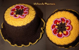 Unschwer zu erkennen, dass er für eine Sonnenblumenliebhaberin bestimmt war. Es freut mich berichten zu können, dass sie sich sehr über den Klohut gefreut hat.